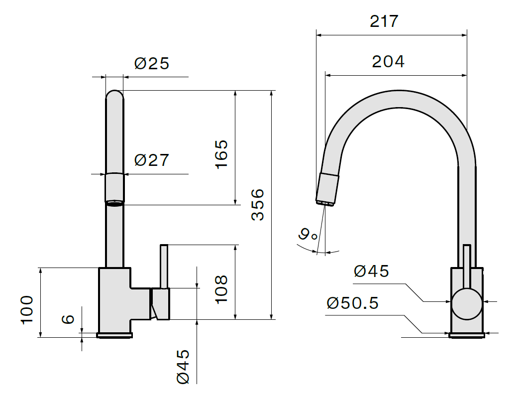 Baterie chiuveta FALMEC Pure Steel Round , Cu dus extractabil, Pivotanta, Monocomanda, Inox AISI 304