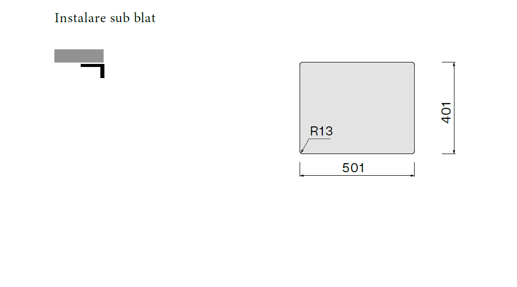 Chiuveta FALMEC COMO 50, 1 Cuva, Instalare sub blat, Dimensiune exterioara 530 x 430 mm, AISI 304 otel inoxidabil, Radius 12mm, Preaplin Perimetral, Fibra anti-zgomot, Sistem drenaj FALMEC