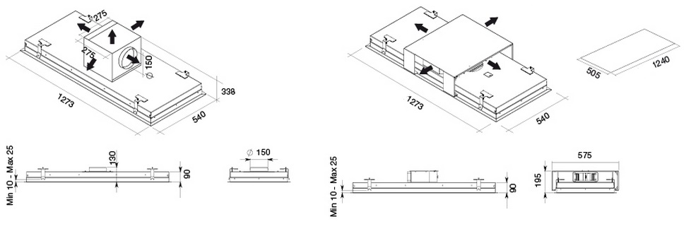 Aspiratie perimetrala - Aceasta caracteristica presupune ca aerul este aspirat prin fantele special prevazute, fara ca filtrele de grasime sa fie vizibile, acestea fiind mascate de un capac fabricat din INOX AISI 304.