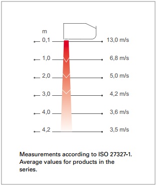 It is considered the fact that the high air speed generates high turbulence and air noise, and the air volumes require high heating power.