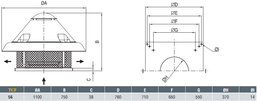 Ventilatorul centrifugal de acoperis ELICENT TCF este conceput special pentru aspiratia directa sau canalizata a aerului din spatii rezidentiale, comerciale si industriale. Acesta este conceput pentru o instalare usoara si are un nivel de zgomot redus. Motorul permite aspirarea aerului ce contine particule de praf dar si a aerului curat la temperaturi maxime de 80 de grade C.