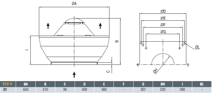 Ventilatorul ELICENT TCF-V se monteaza pe acoperis si are refulare verticala .