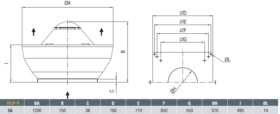 Ventilatorul ELICENT TCF-V se monteaza pe acoperis si are refulare verticala .
