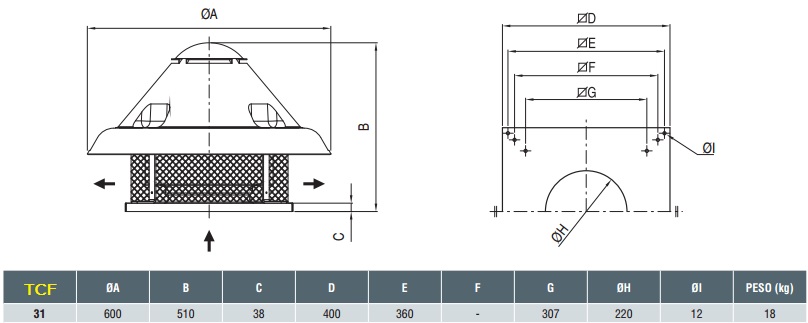 - Ventilatorul centrifugal de acoperis TCF ATEX este conceput pentru ventilarea spatiilor in care sunt prezente substante si amestecuri de gaze inflamabile, in conditiile in care se pot dezvolata medii explozive