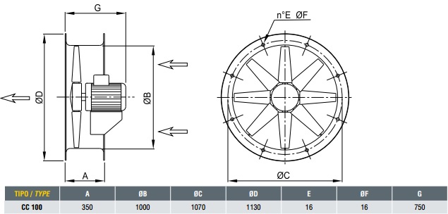 Ventilatorul axial intubat CMP este folosit in aplicatii care presupun instalarea de tubulatura , care necesita un flux mare de aer, cu o cadere de presiune relativ scazuta, cum ar fi: sistemele de ventilatie si de racire in domeniul industrial, naval, comercial, rezidential, energetic, etc.