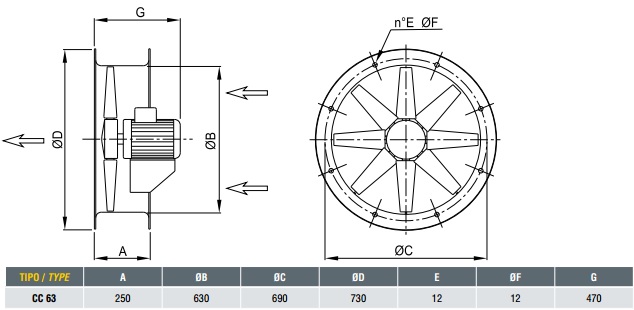 -carcasa este din tabla de otel presat, cu flanse de fixare realizate in conformitate cu UNI ISO 6580 - EUROVENT standard